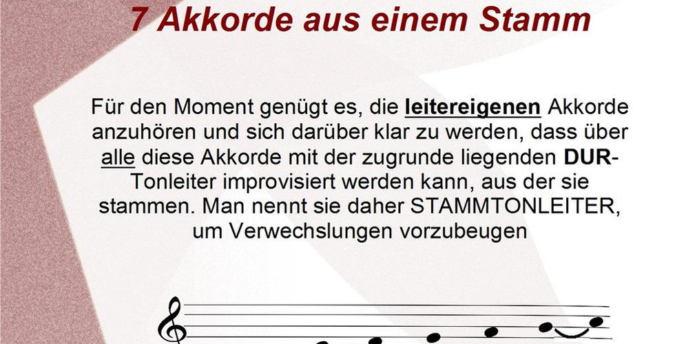 Der Workshop setzt keine Notenkenntnisse, höchstens elementares Wissen über Tonleiter, Moll/Dur Akkorden und Intervallen voraus. Für Die Akkrod-Spieler gilt, nur bis zu Folie gehen, wo die Akkorde in einer Reihe dargestellt sind, (Die C-Dur Tonleiter im Überblick), die Solo-Spieler gehen weiter bis zum Ende.